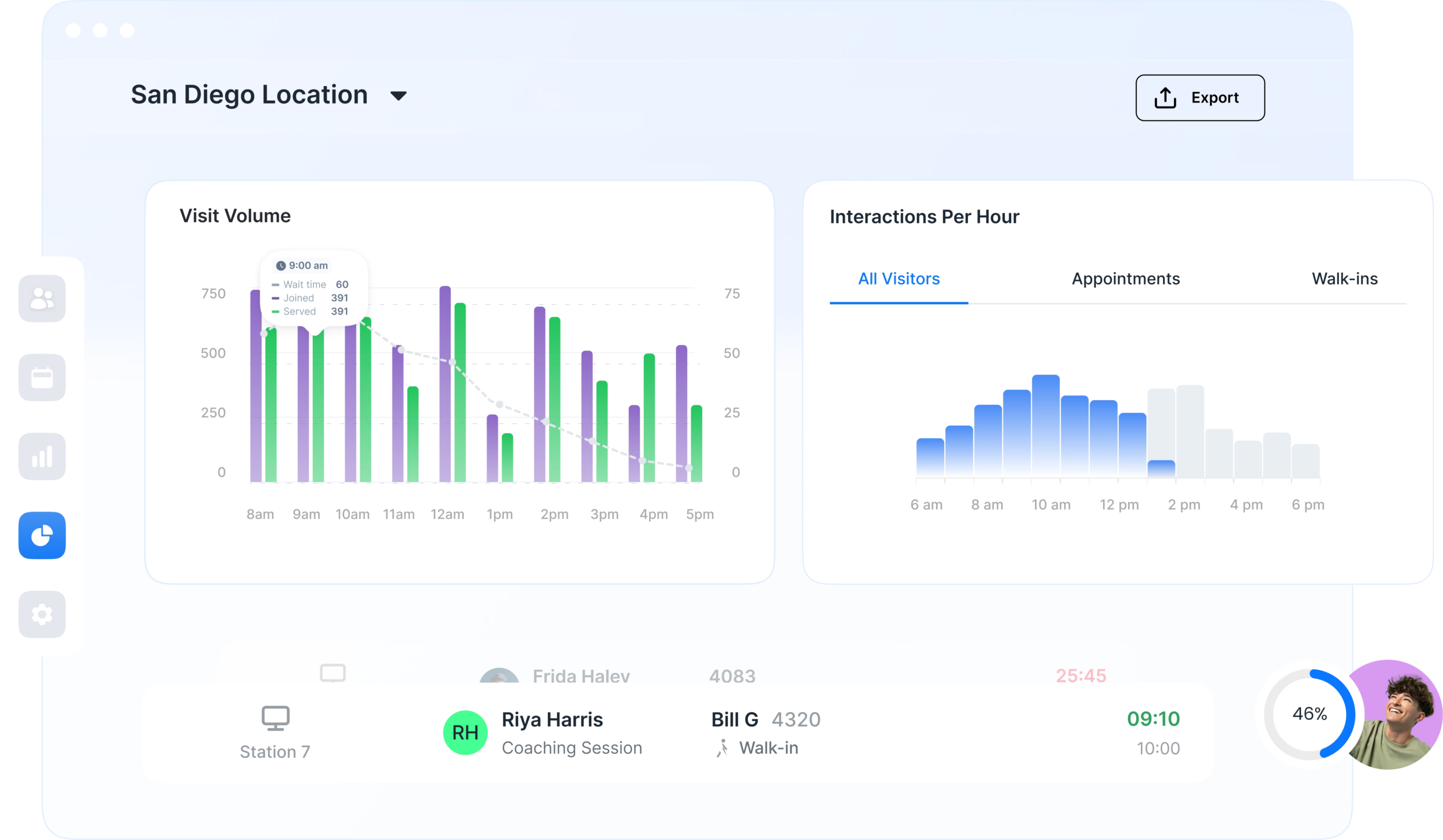 Quickly identify and fix service bottlenecks with a real-time, bird’s- eye view of location performance.