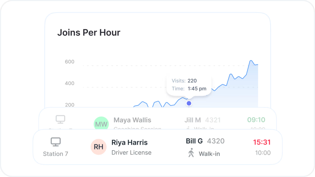 QLESS Service Intelligence with Live Insights lets managers spot delays in real-time, allocate resources better, and clear bottlenecks with up-to-the-minute service metrics.