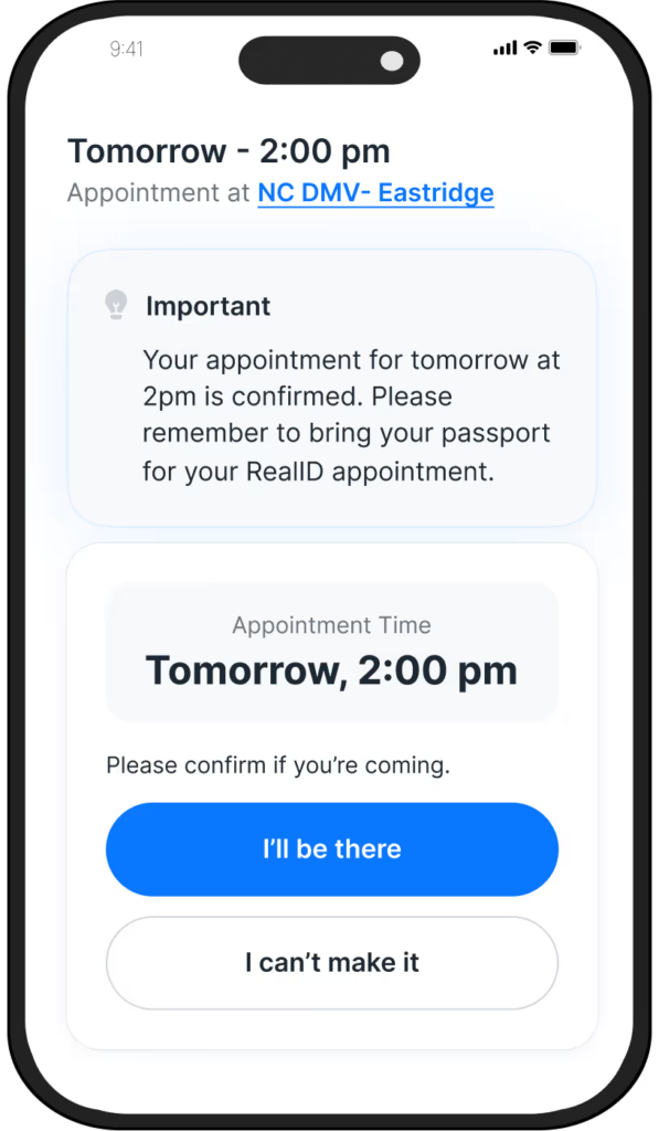 Start serving customers before they arrive with automated, customized notifications. Send reminders with appointment instructions so they’re always prepared